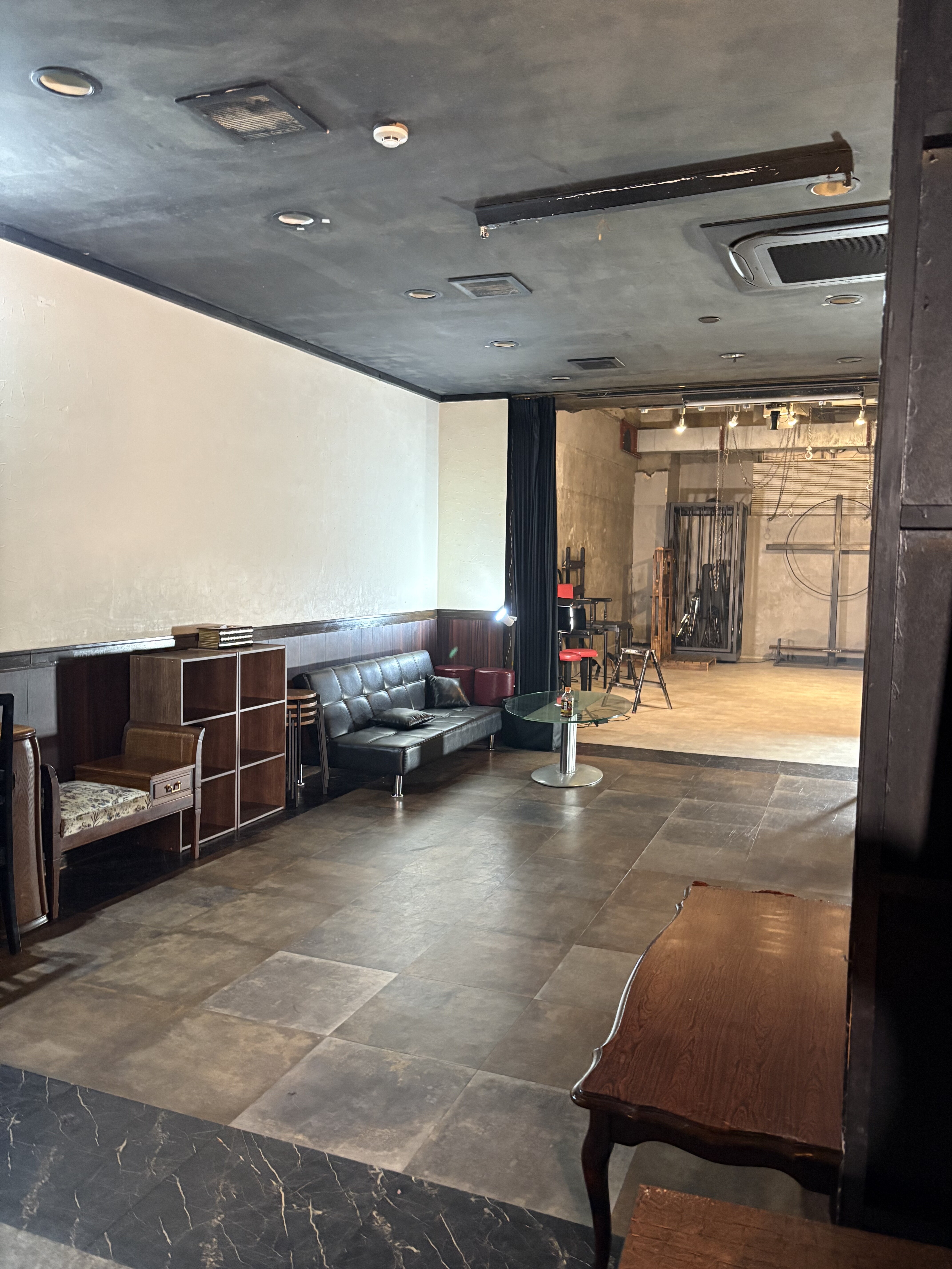BARカウンターはセットなので簡単に移動可能。 Bフロアとの間を仕切り、テーブル、スツールなどでセッティングすると、ラウンジ風ロケーションに設定できます。